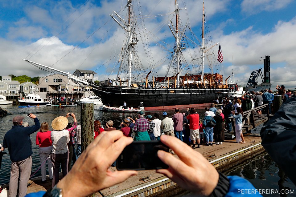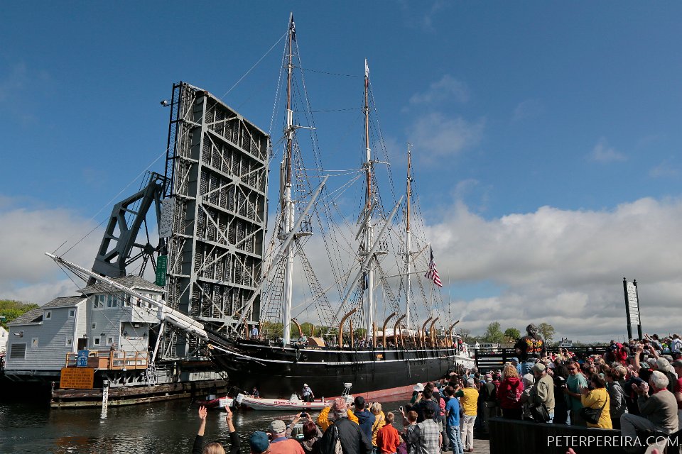www.peterpereira.com The Charles W. Morgan whaleship makes her way from Mystic Seaport in Mystic, CT to New London, CT in the first leg of the journey that will see it return to New Bedford in June.