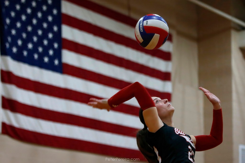 115VE11324 ORR's Carly Mello serves the ball during Old Rochester Regional High School's victory over Shawsheen Tech Varsity.