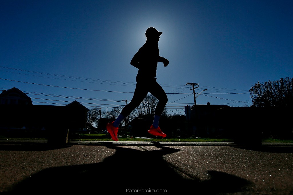 50E14143 A man goes for an early morning run around the south end of New Bedford.
