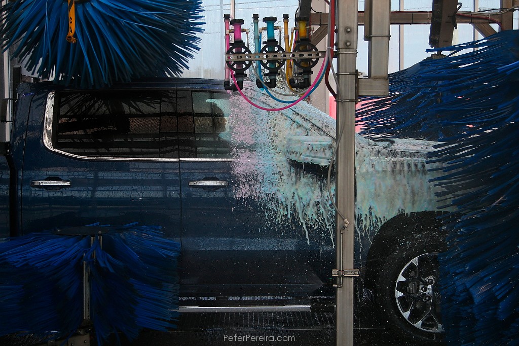 34E14589 A man is seen inside his pickup truck as he takes it for a car wash at the recently opened Regency Car Wash on Route 6 in Wareham.