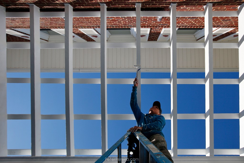 51E14929 Benjamin Perez paints the trellis work of a residence in Fairhaven.