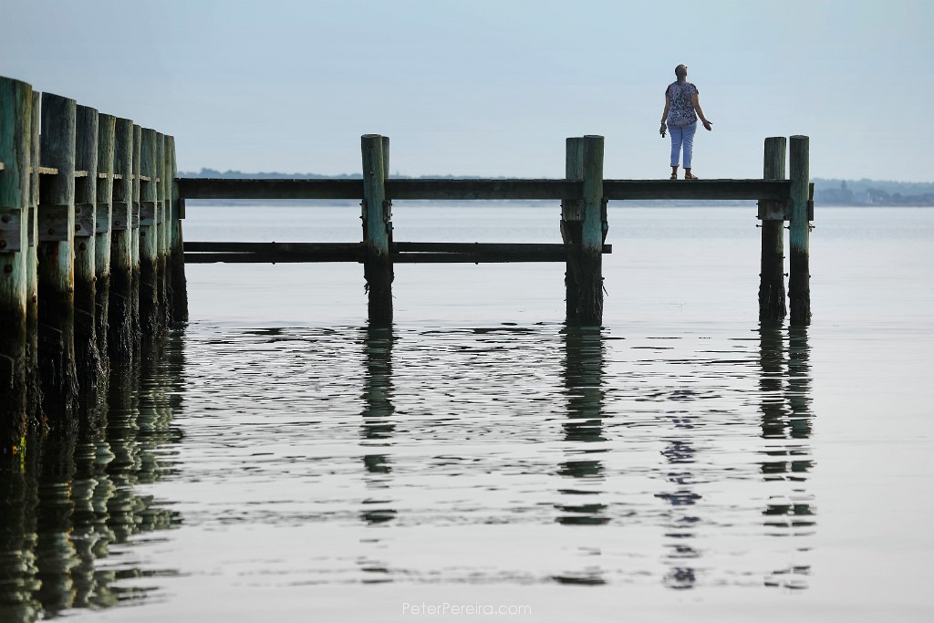 99_M1A4825-2 A man seemingly casts the early morning sun as he fished from the wharf in Mattapoisett.