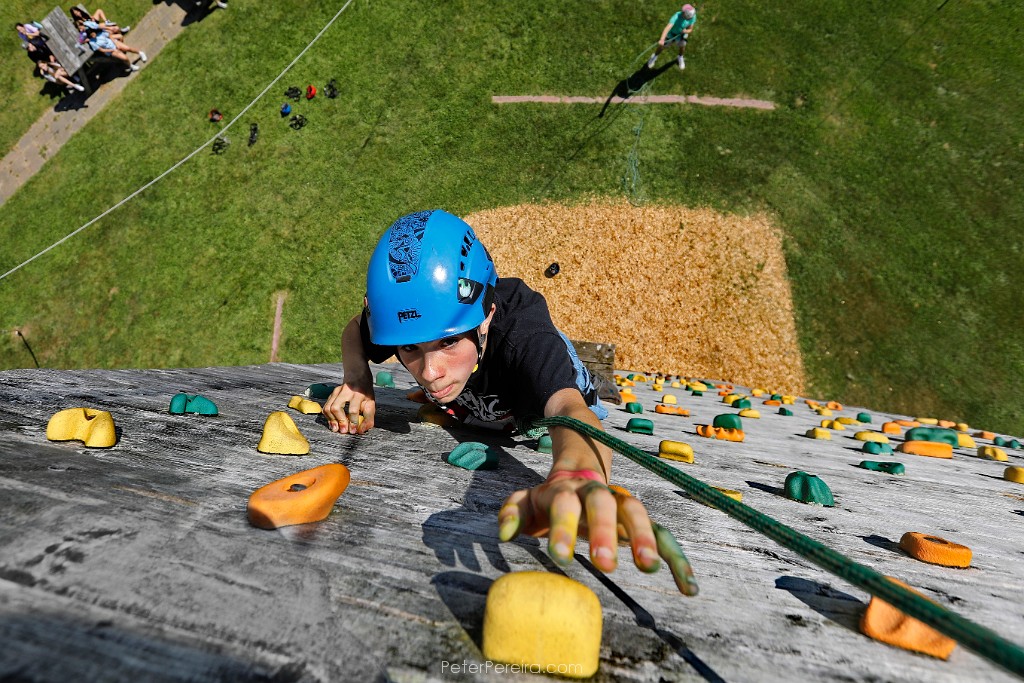 66_M1A3324 Dartmouth Middle School eighth grader, Austin Backlund, 14, reaches for a hand hold as he climbs the 40' wall during a field trip to the Dartmouth YMCA.