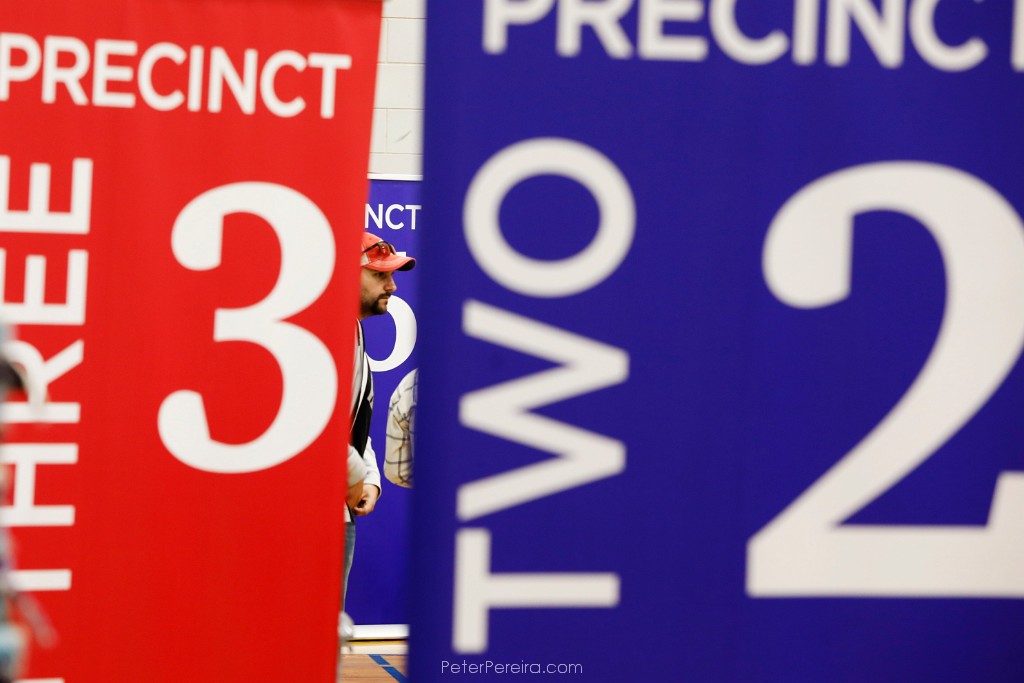 113_M1A3983 A voter waits to receive his ballot at one of the various precinct check-in tables at the Fairhaven Recreation Center polling staion on Election Day, Nov. 5, 2024.