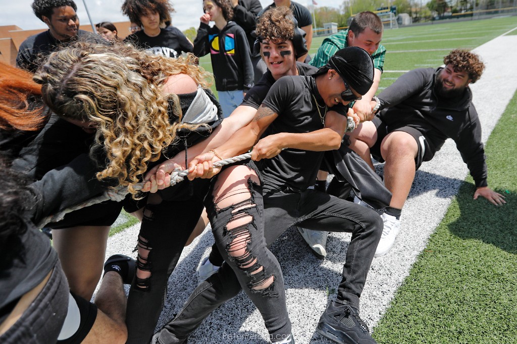 58_M1A7512 Voc students participate in a tug-of-war at the New Bedford Voc-Tech Pep Rally held in the schools outside stadium.