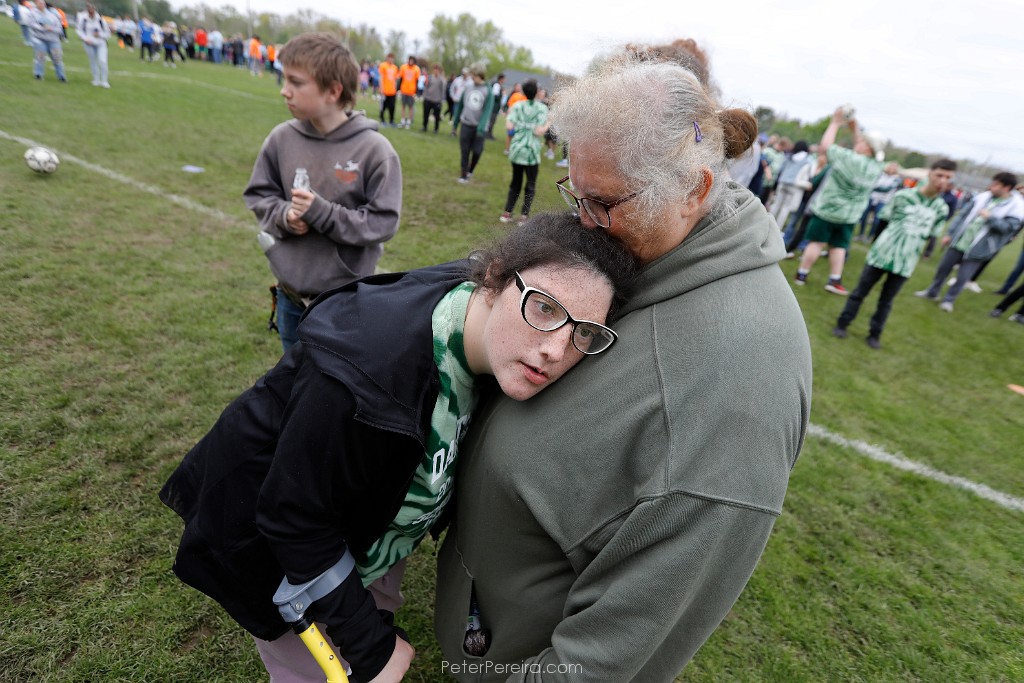 59_M1A8159 Wanda Pittsley kisses her daughter Amanda Pittsley after she kicked a soccer ball during the Special Olympics held at the DYSA field in Dartmouth.