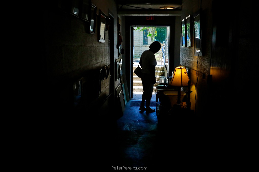62_M1A9863 A woman browses the items for sale at the Firt Unitarian Thrift Shop on 8th Street in New Bedford.