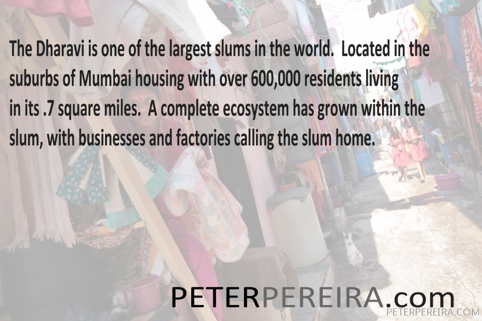 24 Daily life in the Dharbi slum in Mumbai, India. The Dharbi slum is one of the largest in India and contains an entire ecosystem that offers residents the ability to never leave.